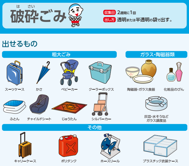 四日市市:《破砕ごみ》として出せるもの(主な品目)と出し方